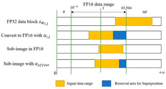 where  represents the FP16 sub-image. The specific imaging region for each data block is presented in Equations (5) and (6).