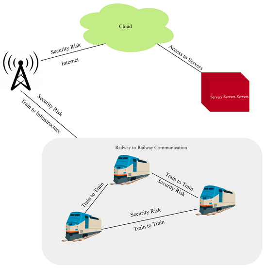 - Eiza, M.H.; Randles, M.; Johnson, P.; Shone, N.; Pang, J.; Bhih, A. Rail Internet of Things: An architectural platform and assured requirements model. In Proceedings of the 15th 2015 IEEE International Conference on Computer and Information Technology, 14th IEEE Conference on Ubiquitous Computing and Communications, 13th IEEE Conference on Dependable, Autonomic and Secure Computing, Liverpool, UK, 26–28 October 2015; pp. 364–370. [Google Scholar] [CrossRef]
