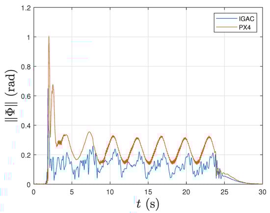 Figure 17, Figure 18 and Figure 19 show the performance of the proposed control scheme in the SITL simulation. The results are compared with those from the simulation of the original PX4 attitude controller. In these figures IGAC refers to the proposed Integral Geometric Attitude Controller.