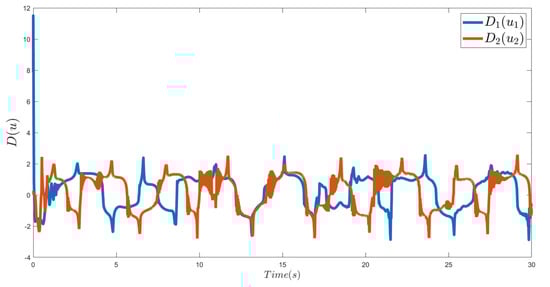 Assumption 1 is the statement about the unmodeled dynamics. Assumption 2 is the statement about the dynamic disturbances. These assumptions are mild and common in the existing relevant literature. The bounds in Assumption 3 and Assumption 4 are supposed to be unknown since they are only needed for analytical purposes, and their real values will not be used in the controller design. Assumption 3 and Assumption 4 are not violated conditions. In Assumption 3, the desired trajectory is the only knowledge requested and is a natural assumption in engineering practice. In Assumption 4, denotes the left and right slopes of the dead zone when and (i.e., when and , ). In engineering practice, the slope is usually bounded, because for any real physical system, the slope of the control input cannot be infinite, which means that there must be an upper bound of . Simultaneously, the unknown input nonlinearity function is bounded obviously due to the upper boundness of . Furthermore, it is usually assumed that , but this assumption cannot be satisfied when there are unknown dead zone nonlinearities because the derivative between the break points is zero, (i.e., , for ). In this work, when , (i.e., the aforementioned positive nature requirement on , will not restrict a zero value appearing in the dead-band as ). Therefore, Assumption 3 and Assumption 4 are realistic and reasonable.