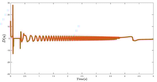 It is well known that measurement noises, modeling errors, and modeling simplifications will result in unmodeled dynamics, existing in many practical nonlinear systems, which will severely degrade the performance of the closed-loop system and even make the closed-loop system unstable. Therefore, by applying a dynamic signal and backstepping, many different methods were employed to handle such systems with unmodeled dynamics [8,9,10,11,12]. In [13], for pure-feedback nonlinear systems with unmodeled dynamics, a new adaptive dynamic surface control (DSC) scheme is proposed, which removes the assumption on the boundness of neural network approximation error. By utilizing the first-order auxiliary system, the produced dynamic signal is employed to handle the dynamical uncertain terms [14]. For a time-delay nonlinear system with full state constraints and unmodeled dynamics, a novel adaptive backstepping control design was proposed in the work of [15] by introducing a one-to-one nonlinear mapping. The Lyapunov function description is also recognized as a very effective methodology to deal with unmodeled dynamics [16,17]. Reference [17] constructs a practical asymptotic stable system only when bounded initial conditions satisfy the initial Lyapunov function . However, the above-mentioned works only achieve asymptotic or exponential stability with infinite convergence time, which cannot provide a high-precision control scheme.