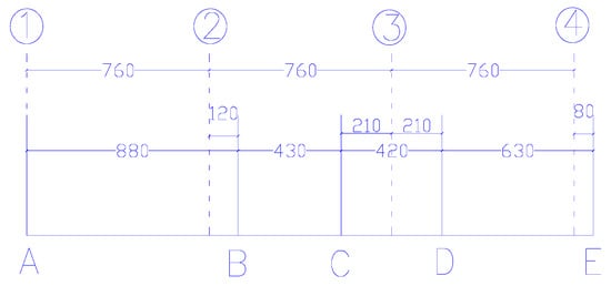 In the case study, we selected Ziwu Road (Qujing, China) as the method validation site. Ziwu Road, which runs north–south and has 6 two-way lanes with large traffic flow, is an important urban arterial road in Qilin District. The traffic flow of the intersecting road is significantly lower than that of the main road. In addition, the space between intersections along Ziwu Road is relatively close, which meets the ideal conditions of green wave design. Therefore, five adjacent intersections of Ziwu Road were chosen for two-way green wave coordinated design. The traffic volume data of each intersection were based on the traffic flow surveyed on the morning of 13 October 2020 (7:30–8:30). For ease of expression, codes of each coordinated control intersection on Ziwu Road were assigned A, B, C, D and E from north to south, as shown in Figure 1. Basic data of each intersection are shown in Table 1.