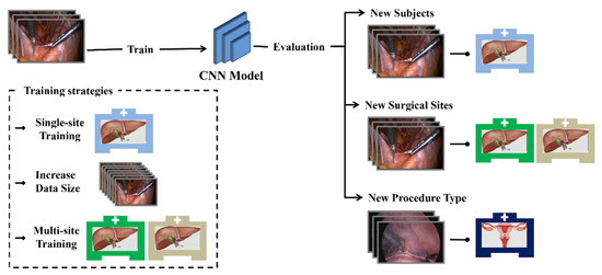 - Bar, O.; Neimark, D.; Zohar, M.; Hager, G.D.; Girshick, R.; Fried, G.M.; Wolf, T.; Asselmann, D. Impact of data on generalization of AI for surgical intelligence applications. Sci. Rep. 2020, 10, 22208. [Google Scholar] [CrossRef]