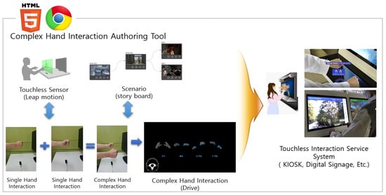 However, until now, there has been no web-based authoring platform that can create the interaction between the media and the users based on hand motions, especially on complex hand motions. The hand can be used as an effective tool in the authorizing platform to create various interactions between the media and the media users. The motion of the hand is recognized via a variety of sensors, from wearable ones to non-contact ones [,,].