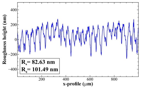 Figure 5 illustrates the outcomes of the surface roughness investigations. It shows that the surface roughness (root mean square) value is less than 102 nm.