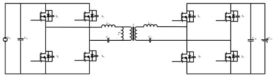 The energy flow of EVs is shown in Figure 1, and this paper focuses on the bidirectional DC–DC converter in the electric drive subsystem [18]. The bidirectional DC–DC converter varies the output voltage of the power battery to a range suitable for efficient motor operation and also feeds the power generated by the motor back into the power battery, thus extending the driving range. These are some characteristics of bidirectional DC–DC converters for automotive applications: (i) In order to reduce the size and mass of the vehicle, the bidirectional DC–DC converter should be as light and small as possible while still providing adequate power. (ii) To extend EV range, DC–DC converters should provide the highest possible transfer efficiency. (iii) In EVs, there is a high rate of starts and stops and a wide range of battery voltage conversions, so they require a DC–DC converter with good dynamic response and immunity to interference.