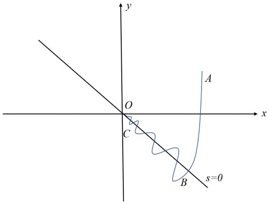 - Conditions of arrival: regardless of where the trajectory starts, the arrival condition directs the state trajectory to the sliding surface, as shown in stages A–B in Figure 4. Depending on the conditions of the termination point, it follows that: