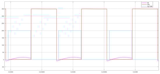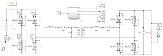The results of forward and reverse runs are similar, the only difference between them is the parameters of the controller. Therefore, this paper takes the simulation results of forward running as an example to verify the correctness of SMC. The parameters of the components in Figure 5 of the simulation model are set according to Table 1 and Table 2, where the parameters of the Mosfet are set according to those of the SCT3060AL-E SiC Mosfet from Rohm, with an onstate resistance of 0.6 , a parasitic diode drop of 3.2 V, etc.