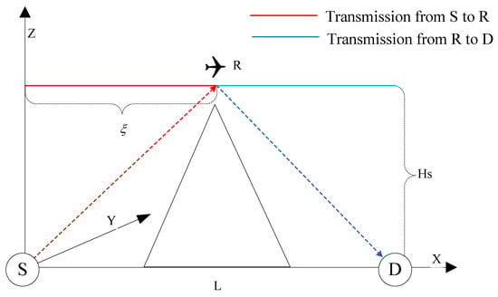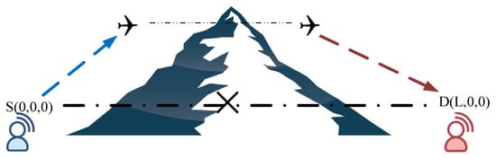 As shown in Figure 2, the UAV flies on the top of the mountain and periodically sends information between S and D. Without loss of generality, we consider a three-dimensional Cartesian coordinate system with S and D located at and , respectively.