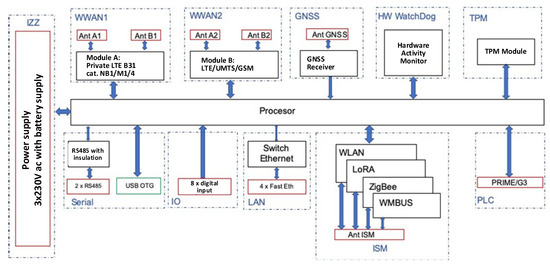 Figure 1 presents the block diagram of the KODEŚ device which was described in detail in article [4]. As was mentioned before, realized data concentrator needs to support interfaces that can work in different networks.