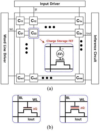 (a) Architecture of the VMM using a charge storage FET cell and (b) cell examples.