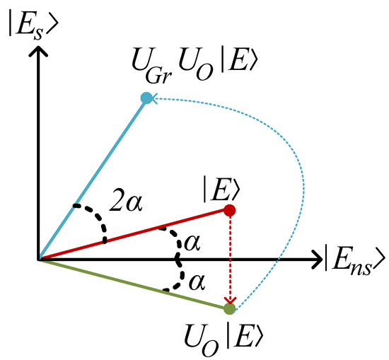 The starting state in a 2D space, which is made by and and with the operation of Grover’s operator, and more details can be found in [4].