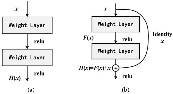 Residual unit. (a) Standard network structure diagram; (b) ResNet structure diagram.