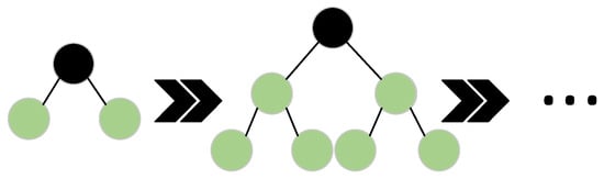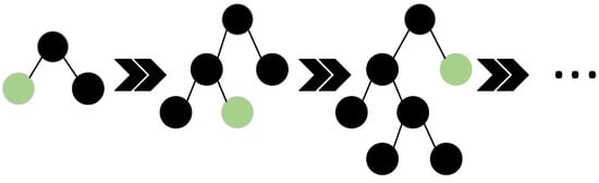 Schematic diagram of growth by layer. (Black nodes represent generated nodes in the tree; green nodes represent nodes selected for splitting at the current time step).