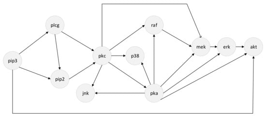 - Sachs, K.; Perez, O.; Pe’Er, D.; Lauffenburger, D.A.; Nolan, G.P. Causal Protein-Signaling Networks Derived from Multiparameter Single-Cell Data. Science 2005, 308, 523–529. [Google Scholar] [CrossRef]