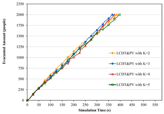 We also run experiments with varied K for partial evaluation in the LCDT&PV approach. The experimental results are described in Figure 5. We can see that the effectiveness of our LCDT&PV approach is slightly different between the values of K. In this case, K equals 3 is the best choice to run our LCDT&PV algorithm. In practice, identifying a suitable K for partial evaluation depends on several information such as the area of the buildings, the distribution of people in the building, and the impact of the fire event.