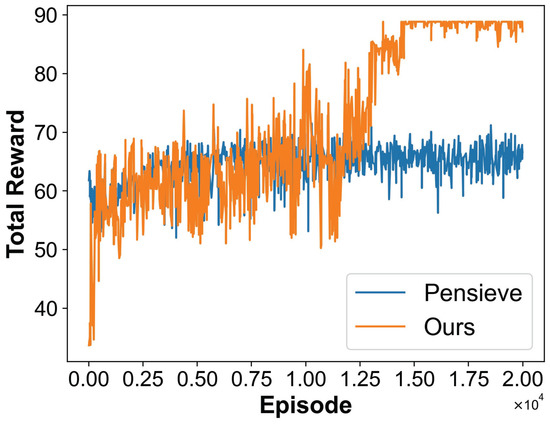 We compare the training process of our proposed SR-Telemedicine with that of Pensieve. As illustrated in Figure 3, it can be seen that both algorithms can be trained to converge, but SR-Telemedicine outperforms Pensieve in average QoE; this implies that SR-Telemedicine can achieve better QoE under the same network condition.