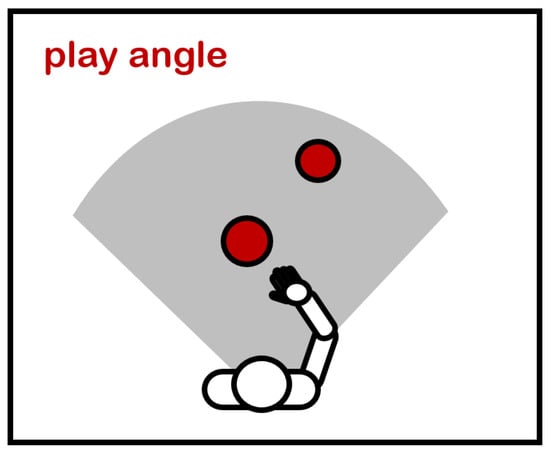 Firstly, we want to highlight the importance of the play angle, which defines the area within which the player is supposed to interact with the targets (Figure 7). Further, we highlight the number of available targets at any given time, their sizes, as well as their distance and/or angle with respect to the player. It is worth noting that the angle in this context refers to both the altitude/elevation angle and the azimuth.