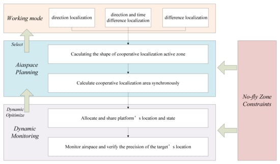 To solve the problem that Multi UAV airspace planning is difficult to coordinate, as well as airspace planning is disconnected from mission requirements, the paper analyzes the geometrical relationship of cooperative localization, designs the optimal layout algorithm for the cooperative platform in the space, and confirms the transducer platform’s valid range of cooperative localization, thus planning transducer platform’s searching route based on the task zone. The functional process of the proposed cooperative localization algorithm for passive transducers, including the shape of cooperative localization zone and optimal planning algorithm of three different working mode, as Figure 1.