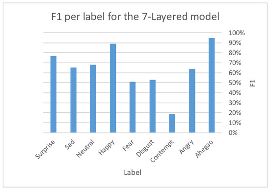 Application of the proposed system to a sample of online courses and in-class students resulted in an unexpected conclusion. In-class students mainly were positive and had interactive emotions such as happy, surprised, sad, and angry. Furthermore, the online students’ emotions were negative faces such as contempt, disgust, fear, and natural. It is worth mentioning that the ahegao emotion appeared a few times with only online course students and never appeared with in-class students. Furthermore, according to the grades achieved, it was expected that online course students would have lower total grades based on their emotions during the class. However, the system proved the opposite: online course students achieved higher grades than in-class students.
