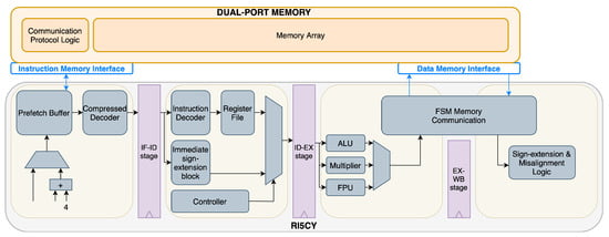 - Traber, A.; Gautschi, M.; Schiavone, P.D. RI5CY: User Manual; Micrel Lab and Multitherman Lab University of Bologna: Bologna, Italy; Integrated Systems Lab ETH: Zürich, Switzerland, 2019. [Google Scholar]