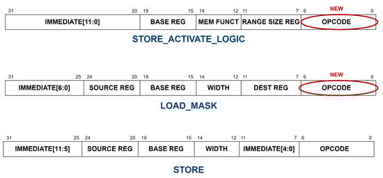 To improve the flexibility of the RISC-VLiM system, similarly to what was undertaken in [], we modified the original RISC-V compiler, inserting the new custom instructions. Starting from the riscv-gnu-toolchain (https://github.com/riscv-collab/riscv-gnu-toolchain, last accessed on 15 September 2022) and using the RISC-V Opcodes (https://github.com/riscv/riscv-opcodes, last accessed on 15 September 2022) tool, we were able to insert store_activate_logic and load_mask instructions to the original instruction set. We started by modifying the file opcodes-rv32i in the riscv-opcodes repository and inserting the new custom LiM instructions. For example, the sw_active_or instruction is defined as:
