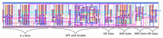The LiM cell layout is reported in Figure 12. Both Standard and LiM flows are based on the FreePDK 45 nm CMOS technology. At the end of the LiM procedure, the Liberty file is compiled with Library Compiler by Synopsys and the new custom library is ready to be used.