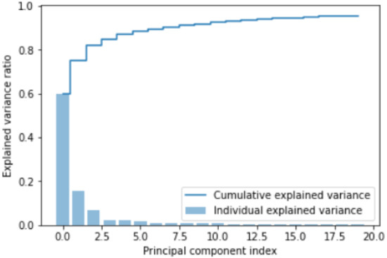 We validated the number of features by applying PCA. The explained variance ratio is depicted in Figure 7.