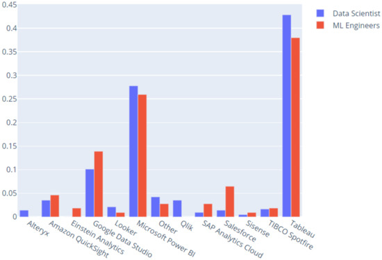 Furthermore, we studied data scientists and machine learning engineers from the perspective of business intelligence tools that they use (Figure 13).