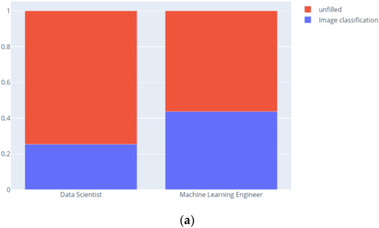 Machine learning is considered a disruptive technology that is applied in many industries. The promise of machine learning is the lowering of product and service costs, the speeding up of business processes, and better customer service [12,13]. According to Culbertson [14] the demand for workers with AI talent has more than doubled over the past three years, with an increase of approximately 119% in AI-related vacancies. At this moment, big data [15] and cloud computing [16,17] are two technologies used in BI. Different authors [18,19,20] have stated that there is a need for initiatives that will address the integration with machine learning for big data processing. Although data science and machine learning often are used together and are very interrelated, this article presents an analysis of the differences between them by studying the characteristics that data scientists and machine learning engineers share, and by studying the characteristics by which they differ. The differences are brought to the surface by engineering the ten most important features so that the identified features are the most relevant. We chose to conduct a very granular classification between data scientists and machine learning engineers by employing different analyses, statistics, and metrics, as both DS and ML engineers use, very often, the same tools and they often have a common knowledge background. The focus is on the tools and on the knowledge that these professionals use.