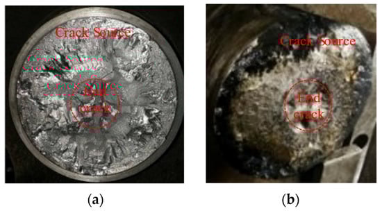 Fatigue fracture, which accounts for more than 50% of the fractures of mechanical parts [], has long been the focus of fracture failure research. Recent studies have considered many factors that contribute to fatigue fracture [,,,,,,,,,], such as materials, structure, manufacturing processes, service conditions, and dynamic behavior.