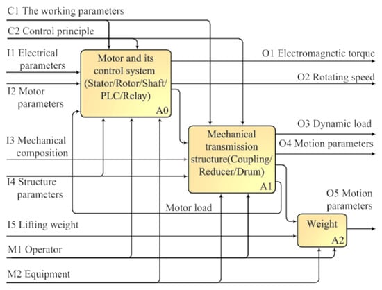 As shown in Figure 11, the hoisting mechanism is divided into three modules: the motor and its control, the mechanical transmission system and hoisting weight. Each modules contain its own structural parameters, control parameters, and working parameters, and there are dynamic loads, motion parameters, and control parameters to realize data transmission and feedback between them. Therefore, it is necessary to build an electromechanical coupling dynamics model of the motor, its control system and the mechanical transmission system, in order to analyze the dynamic response of the hoisting mechanism.