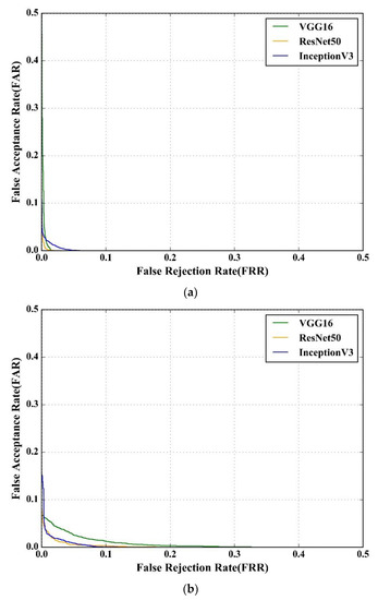 To verify whether the deep residual network performs better than other ordinary deep networks in the face anti-spoofing task, we conducted a comparative experiment. The experiment selected VGG16 [18], and InceptionV3 [19] for comparative experiments. In the results shown in Table 1 and Figure 7, ResNet50 has a higher detection accuracy than VGG16 and InceptionV3 on Replay-Attack and CASIA-FASD datasets.
