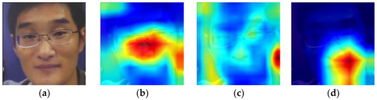 The visualization results of photo face in the last layer network. (a) Original. (b) ResNet50. (c) VGG16. (d) InceptionV3.