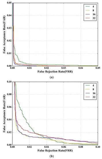 The reduction ratio r is an important parameter that can vary the capacity and computational cost of the SE module in the model, and the value of r can also affect the performance of the network model. So, in order to obtain the best value of the parameter r suitable for this face anti-spoofing research, we set the parameter r at the values of 4, 8, 16, and 32 for experiments, and compared experiments with the residual network without the SE module. The results are shown in Table 2 and Figure 11; the result of Table 2 shows that adding the SE module can effectively improve model performance. When the parameter r is smaller, the model is larger, but the model performance does not improve with the increase of the model parameters. Moreover, from Figure 11, we can see that when the value of r is 8 and 16, the model performance is relatively better. We Considered that the actual situation would make the model easier to deploy. The value of r of 16 can be a good choice between the performance and size of the model, so the parameter r is set to 16 in this paper.