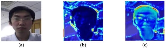 In the conventional convolution operation, the spatial information and channel information of width and height are fused for superposition calculation. By extracting features globally and ignoring the different relationships between the channels, the features that are useless for the task will also be extracted and become redundant information classification criteria. When the face feature map is extracted by convolution, the example of the feature map is obtained, such as in Figure 2. The figure is a partial feature map of the output of the fourth activation layer in ResNet50. The reason for choosing this layer is that the unimportant features are discarded after the activation function ReLU to highlight the useful features, and at the same time, this layer is located in the superposition of shallow residual blocks. The shallow detail features are preserved. From the Figure 2b–d, we can see that when the input face image features are directly extracted by the residual block, the importance of different filter features is not distinguished. Features mainly focus on the edges of the face contour, nose, eyebrows, eyes, and other sudden color changes after multiple residual convolutions. However, the ceiling lines in the overhead background are also obtained as edge features. Although the skip connection operation in the residual network alleviates the gradient disappearance problem caused by the deepening of the network layer, it also transfers the useless feature information of the background area from the shallow network to the deep layer, which will not be discarded in the process of network optimization. Eventually, it becomes useless information in the living detection criterion.