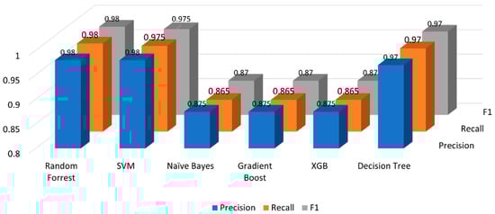 The main metrics utilized in this study for the evaluation of our framework are accuracy and F1 measure, but we have also included the results with precision and recall for better understanding of the results. These evaluation metrics are consistent with those utilized in another research [36,37]. We have defined the evaluation technique as follows: