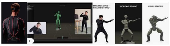 - Rokoko Studio. Available online: https://www.rokoko.com/studio (accessed on 2 May 2021).