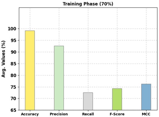Figure 6 signifies the average intrusion classification performance of the presented FSHDBN-CID method on 70% of TR data. The figure indicated that the FSHDBN-CID model has reached an enhanced average of 99.14%.