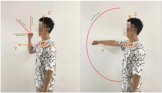 - Vertical trajectory: The end of the upper limb draws a vertical line. In the Y-Z plane, the end of the upper limb takes the shoulder as the origin and moves 25 cm in the direction of the growth of the Z-axis coordinate value.