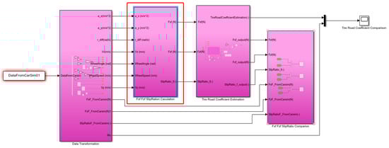 Overall model of pavement friction coefficient estimation algorithm in Simulink environment.