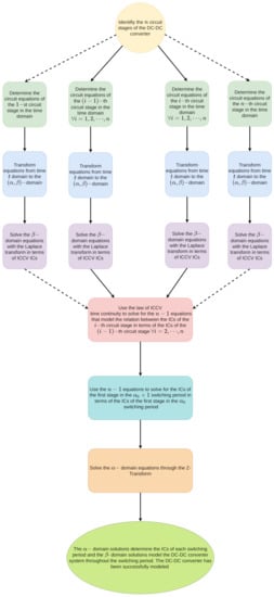 With the assumption that the initial condition of at is given, and the ability to inter-relate the initial conditions of each circuit stage over the same switching period from (12), and the ability to interrelate the the initial conditions of two consecutive switching periods; one can analytically model for all time. This allows for one to obtain the transient ICCV response with precise accuracy. This analysis was conducted solely through piecewise-linear methods. The mathematical methods applied throughout this modeling technique are summarized in the flowchart presented in Figure 2.