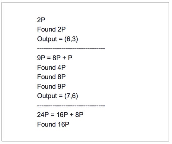 - López, J.; Dahab, R. Improved algorithms for elliptic curve arithmetic in GF (2 n). In International Workshop on Selected Areas in Cryptography; Springer: Berlin/Heidelberg, Germany, 1998; pp. 201–212. [Google Scholar]