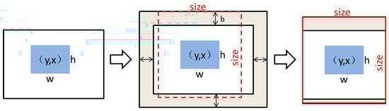 We represent the size of the target coordinate box of the input image as and set the size of the boundary filling after clipping the template image z to ; then, the size of the target in the input image is