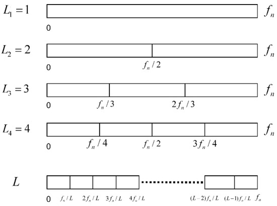 Taking the bisection method as an example, the process of the fast spectral kurtosis map algorithm [22,23,24] is shown in the following formula: