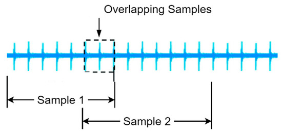 In this paper, the experimental sample expansion method adopted by Zhang Long [25] is used to expand the original data. The method adopts the overlapping sample method to segment and expand the original data, obtains the kurtosis map under single-type fault through data processing, and obtains time series samples through data conversion. The method used for sample augmentation is shown in Figure 6.