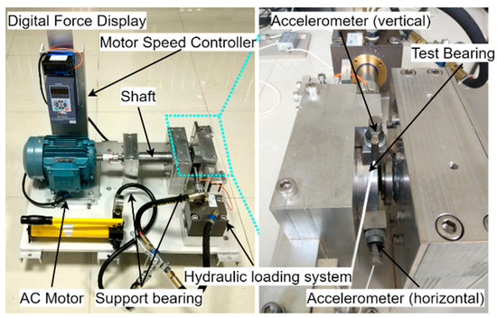 The data of this dataset are all collected through experiments on the bearing accelerated life test bench. The structure of the test bench is shown in Figure 7 below: