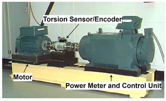 As shown, the components included in the test bench are the motor, torsional sensor/encoder, control unit, and power meter. Bearing failure made by EDM.