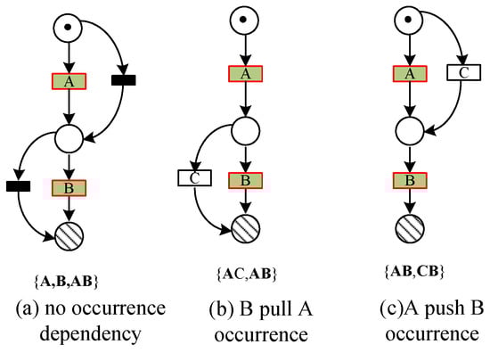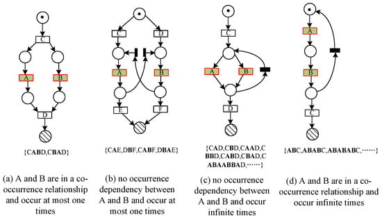 Clearly, Definition 9 denotes , if , then , i.e., activities in a co-occurrence always occur simultaneously in an execution sequence.