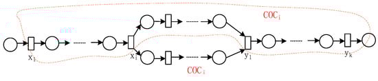 Let L be an event log, are co-occurrence classes from the event log L, and . If , holds, then is the redo substructure of the loop structure, while is the do substructure of the loop structure.